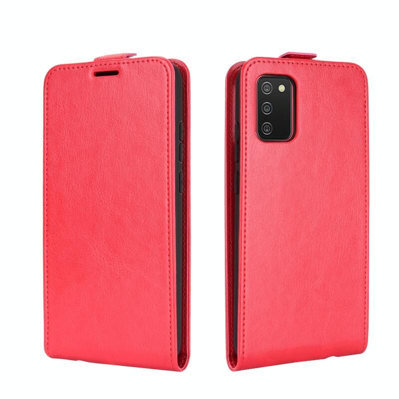 Για το Samsung Galaxy A02s (έκδοση ΕΕ) R64 Υφή Μονή κάθετη Flip δερμάτινη προστατευτική θήκη με υποδοχές για κάρτες & πλαίσιο φωτογραφιών (Κόκκινο)