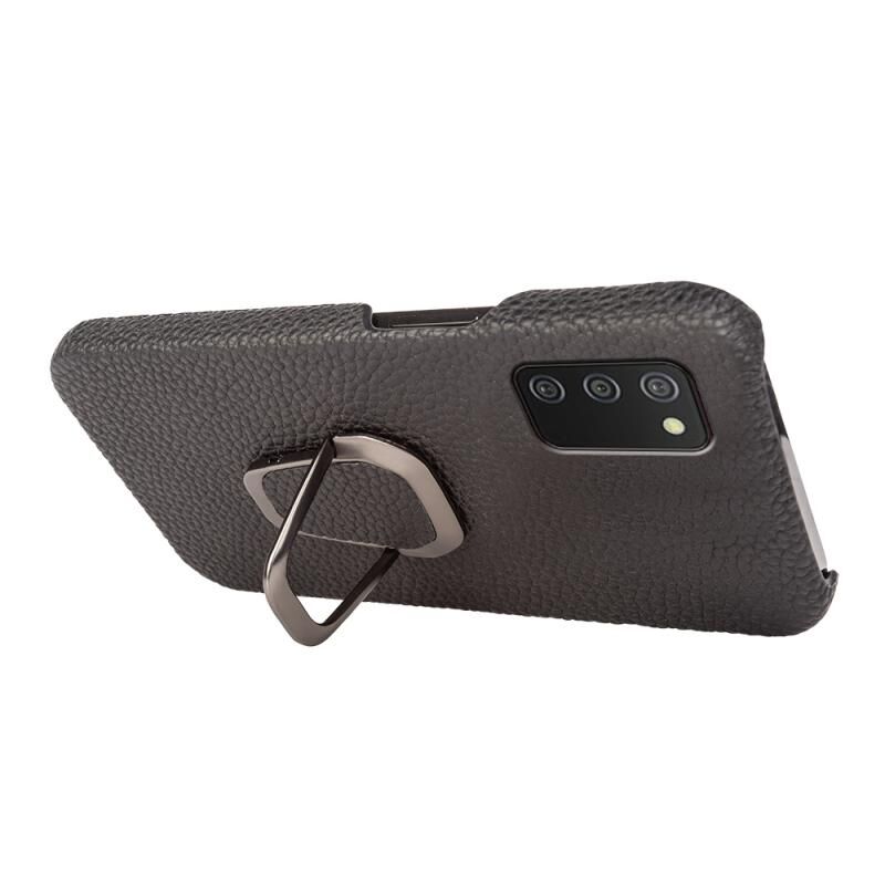 Θήκη τηλεφώνου Samsung Galaxy A02s EU Version με δακτύλιο και γνήσιο δέρμα με υφή λύτσι (Μαύρο)