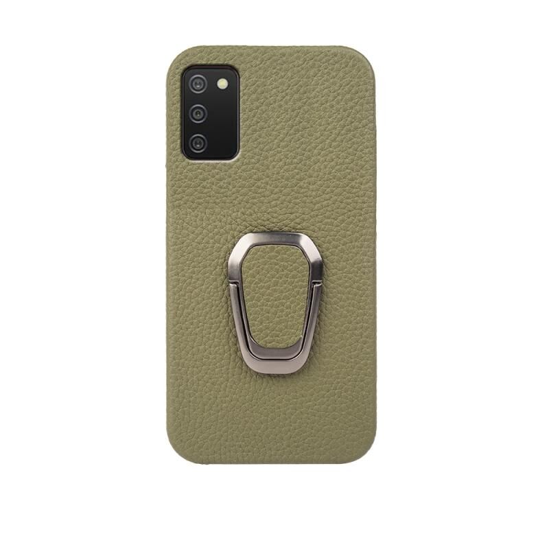 Θήκη τηλεφώνου Samsung Galaxy A02s EU Version με δακτύλιο και γνήσιο δέρμα με υφή λύτσι (Μαύρο)