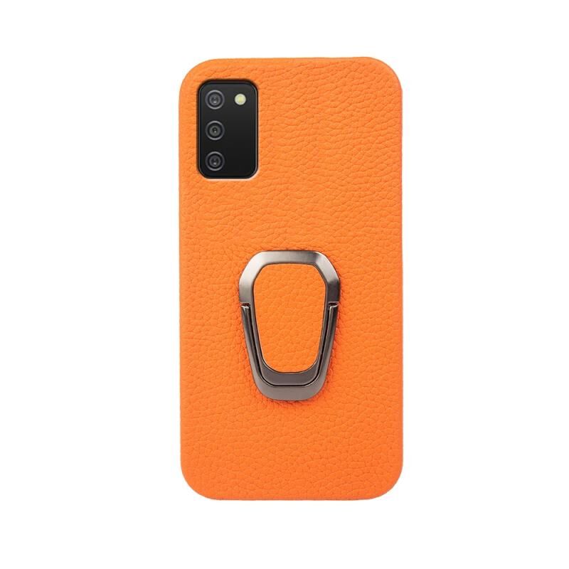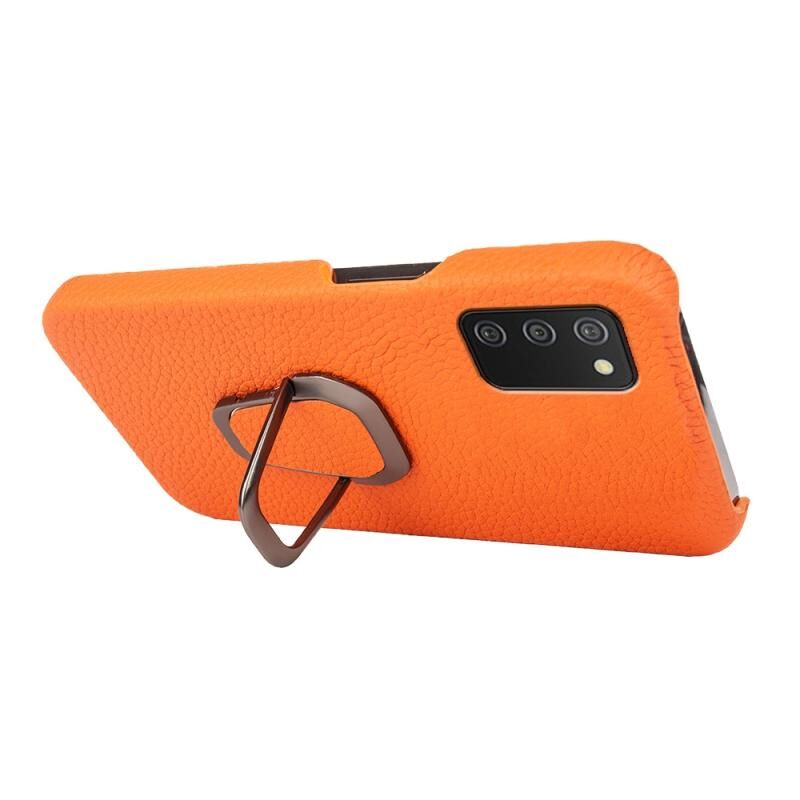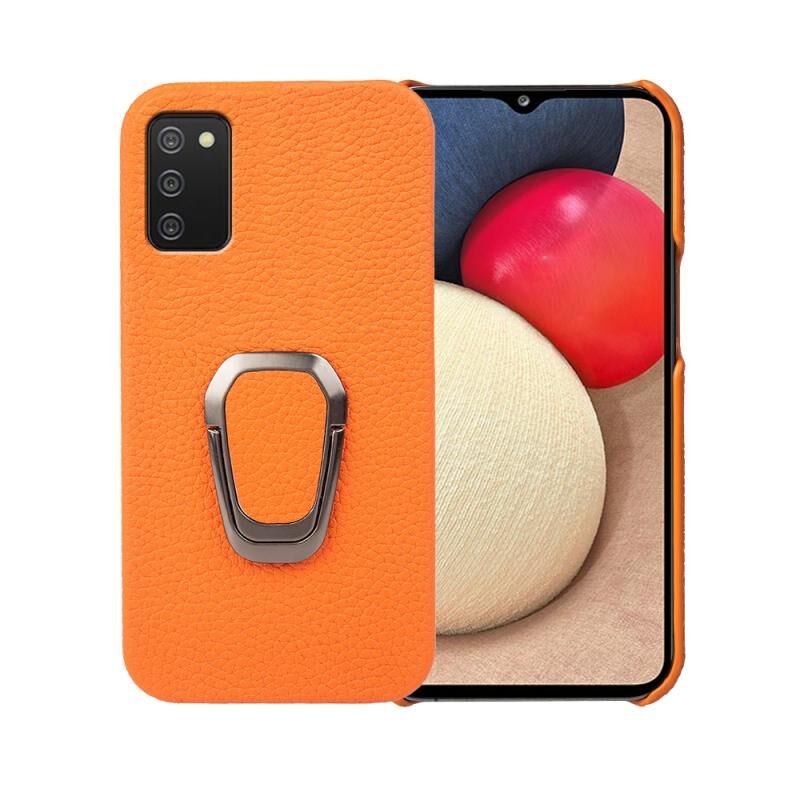 Θήκη τηλεφώνου Samsung Galaxy A02s EU Version με δακτύλιο και γνήσιο δέρμα με υφή λύτσι (Μαύρο)
