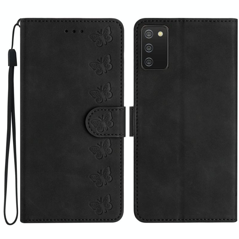 Θήκη τηλεφώνου δερμάτινη ανάγλυφη με σχέδιο επτά πεταλούδων για Samsung Galaxy A02s Έκδοση ΕΕ (Μαύρο)