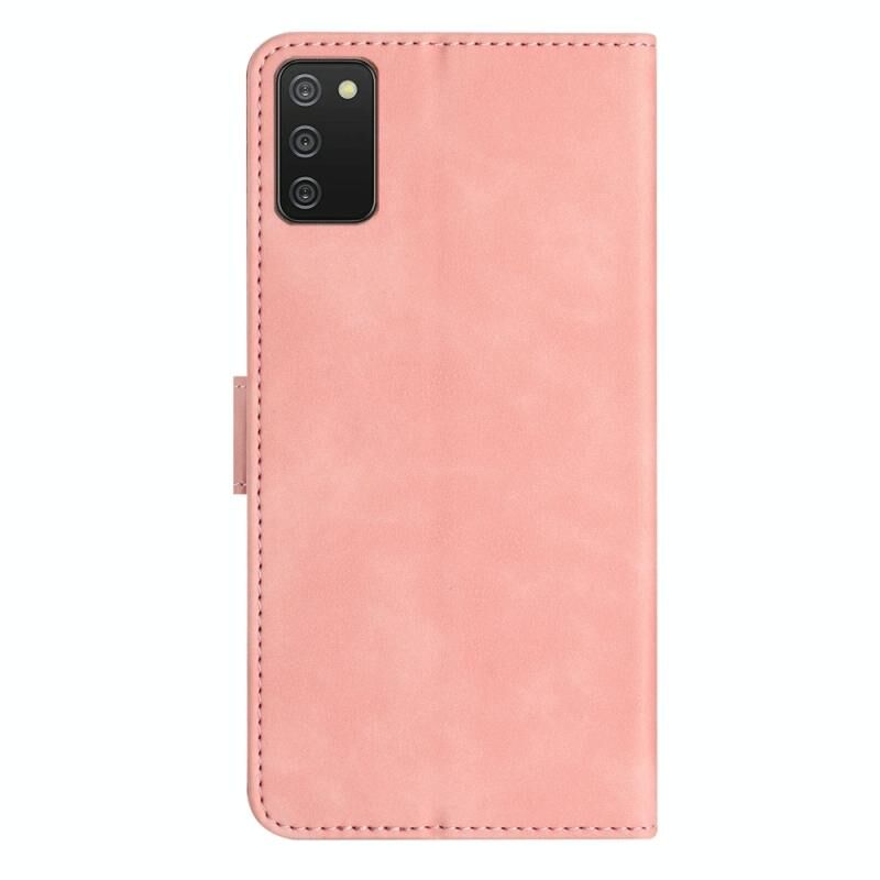 Θήκη τηλεφώνου δερμάτινη ανάγλυφη με σχέδιο επτά πεταλούδων για Samsung Galaxy A02s Έκδοση ΕΕ (ρόζ)