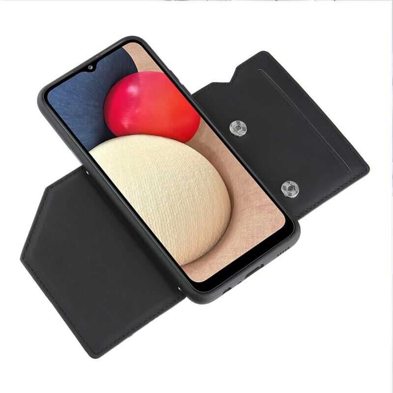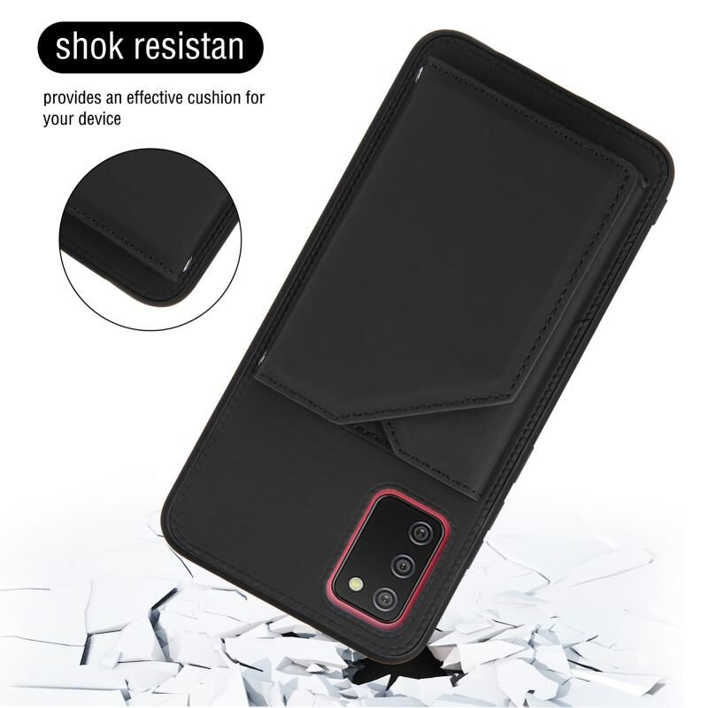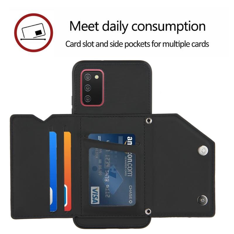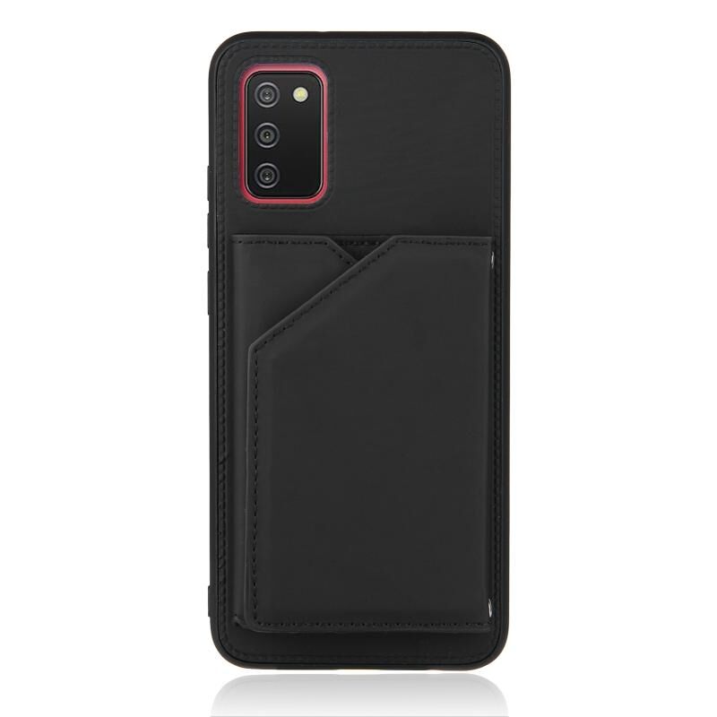 Για το Samsung Galaxy A02s (έκδοση ΕΕ) Skin Feel PU + TPU + PC Back Cover Shockproof Case με υποδοχές για κάρτες & Holder & Photo Frame (Μαύρο)