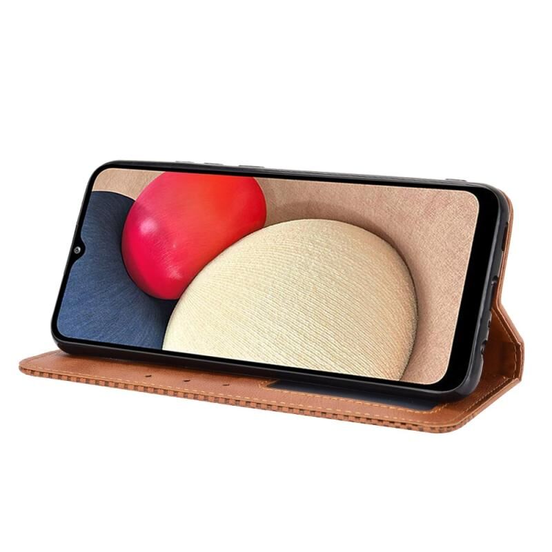 Για Samsung Galaxy A02s (Ευρασιατική έκδοση) Μαγνητική πόρπη Ρετρό τρελό άλογο υφή οριζόντια Flip δερμάτινη θήκη με κάτοχο & υποδοχές για κάρτες & κορνίζα φωτογραφιών (Καφέ)