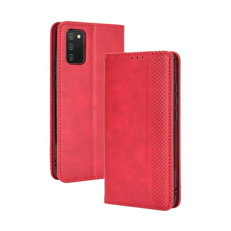 Για Samsung Galaxy A02s (Ευρασιατική έκδοση) Μαγνητική πόρπη Ρετρό τρελό άλογο υφή οριζόντια Flip δερμάτινη θήκη με υποδοχή & υποδοχές για κάρτες & πλαίσιο φωτογραφιών (Κόκκινο)