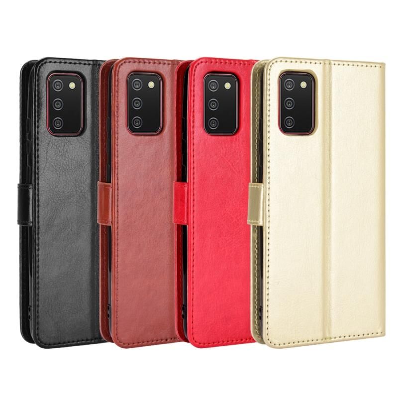 Για το Samsung Galaxy A02s (Ευρασιατική έκδοση) Ρετρό τρελό άλογο υφή οριζόντια Flip δερμάτινη θήκη με θήκη & υποδοχές καρτών & πλαίσιο φωτογραφιών (κόκκινο)