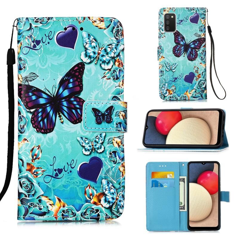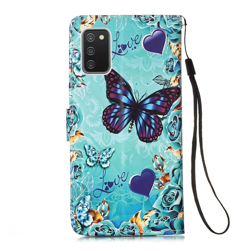 Θήκη δέρματος οριζόντιας αναδίπλωσης με σχέδιο πολύχρωμης ζωγραφικής, απλής ύφανσης για Samsung Galaxy A02s (Ευρωπαϊκή Έκδοση) με βάση στήριξης & υποδοχή κάρτας & πορτοφόλι & κορδόνι (Φροντίδα Πεταλούδας)