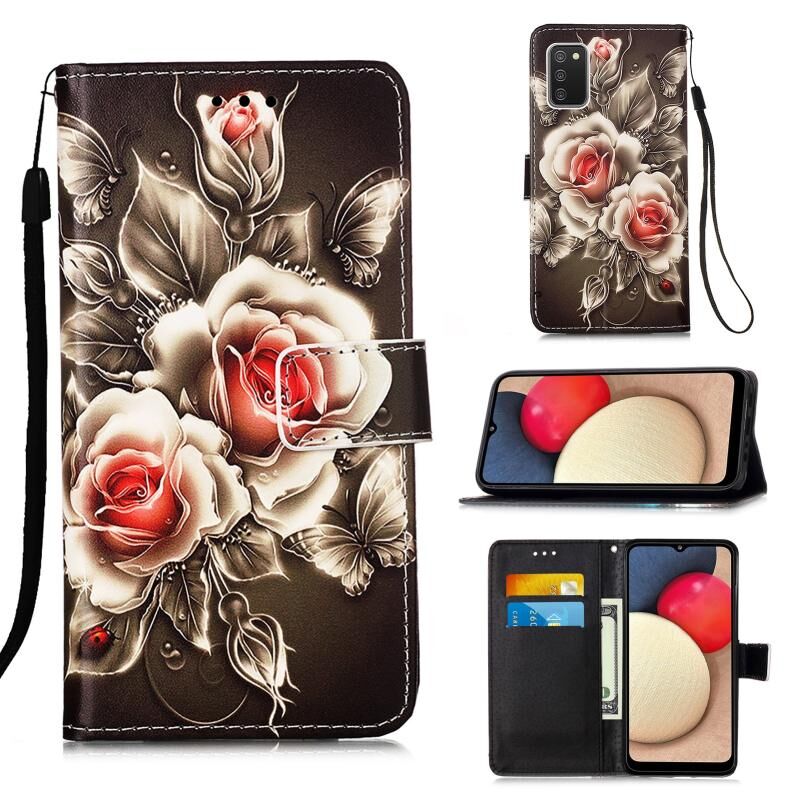Θήκη δέρματος οριζόντιας αναδίπλωσης με σχέδιο πολύχρωμης ζωγραφικής, απλής ύφανσης για Samsung Galaxy A02s (Ευρωπαϊκή Έκδοση) με βάση, θήκη για κάρτες, πορτοφόλι και κορδόνι (Τίγρης σε Μαύρο και Λευκό).