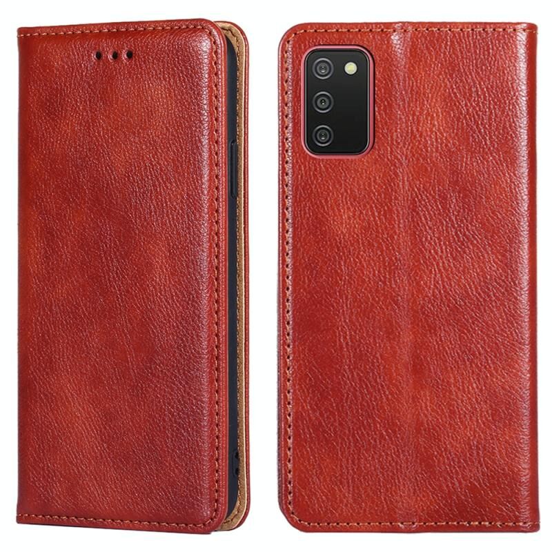 Για Samsung Galaxy A02s (Ευρωπαϊκή έκδοση) PU + TPU Gloss Oil Solid Color Μαγνητική οριζόντια Flip δερμάτινη θήκη με θήκη για κάρτες & υποδοχή & πορτοφόλι (καφέ) (ViLi)