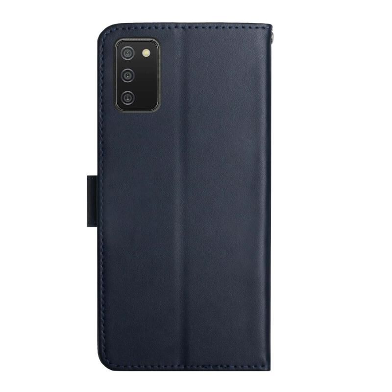 Θήκη τηλεφώνου Samsung Galaxy A02s, αυθεντικό δέρμα, οριζόντια, με μαγνητικό κλείσιμο και προστασία από δακτυλικά αποτυπώματα (Μπλε)