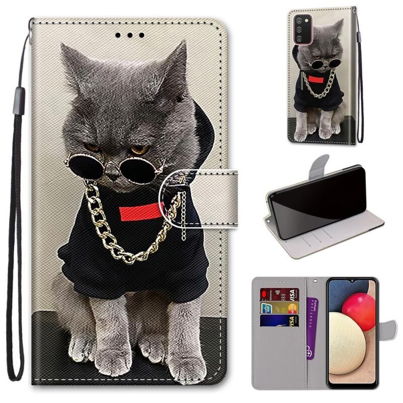 Θήκη για Samsung Galaxy A02s / M02s με πολύχρωμο σχέδιο, υφή σταυρού, οριζόντια αναδίπλωση από δερματίνη PU με βάση στήριξης & θήκες καρτών & πορτοφόλι & κορδόνι (Πράσινο Λεμόνι)