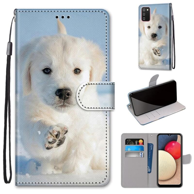 Θήκη για Samsung Galaxy A02s / M02s με πολύχρωμο σχέδιο, υφή σταυρού, οριζόντια, από δερματίνη PU με βάση στήριξης, θήκες για κάρτες, πορτοφόλι & λουρί (Snow Puppy)