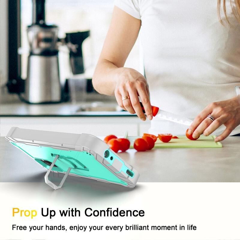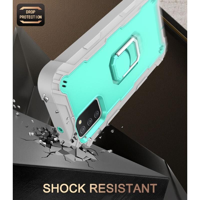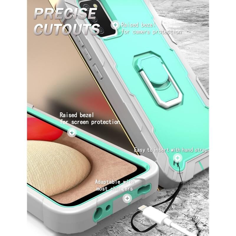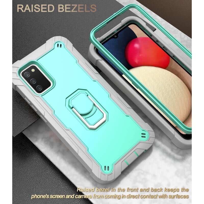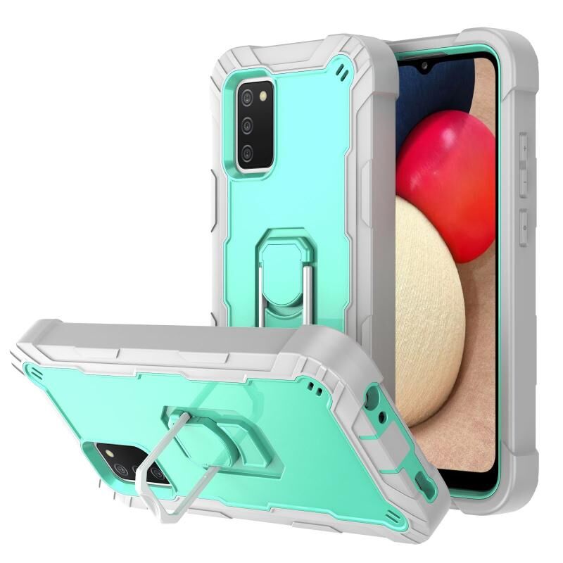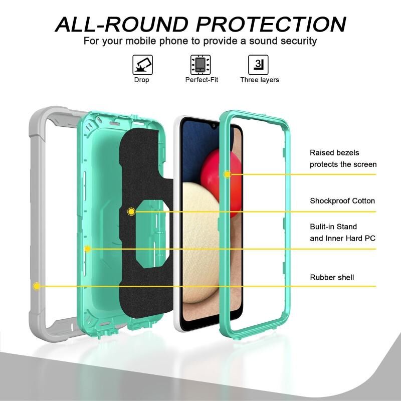 Για Samsung Galaxy A02s PC + καουτσούκ 3-στρώματα Αδιάβροχη προστατευτική θήκη με περιστρεφόμενη θήκη (γκρι λευκό + πράσινο μέντα)