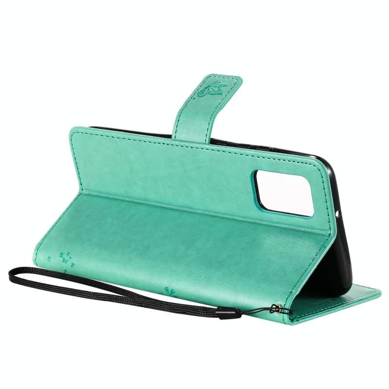 Για Samsung Galaxy A02s Tree & Cat Pattern Pressed Printing Horizontal Flip PU Leather Case με θήκη & υποδοχές για κάρτες & πορτοφόλι & κορδόνι (πράσινο)