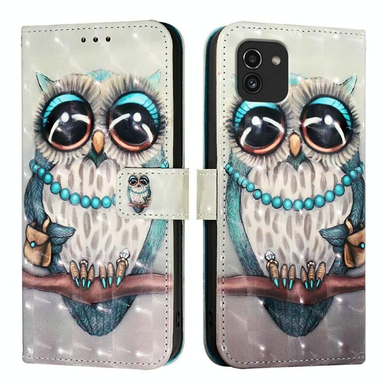 Θήκη τηλεφώνου Samsung Galaxy A03 164mm, δερμάτινη, οριζόντια αναδιπλούμενη με 3D ζωγραφική (Χρυσή Πεταλούδα)