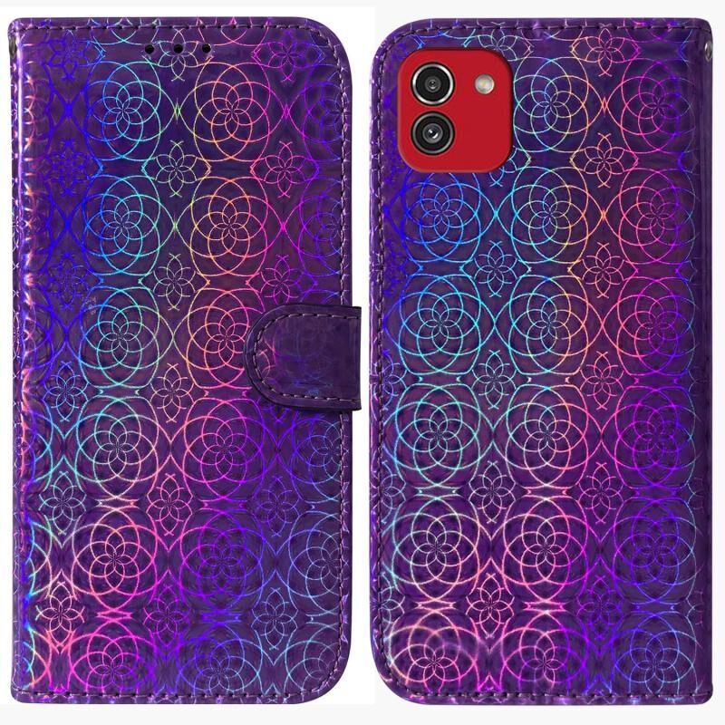Για Samsung Galaxy A03 164mm πολύχρωμο μαγνητικό πόρπη δερμάτινη θήκη τηλεφώνου (Μωβ)