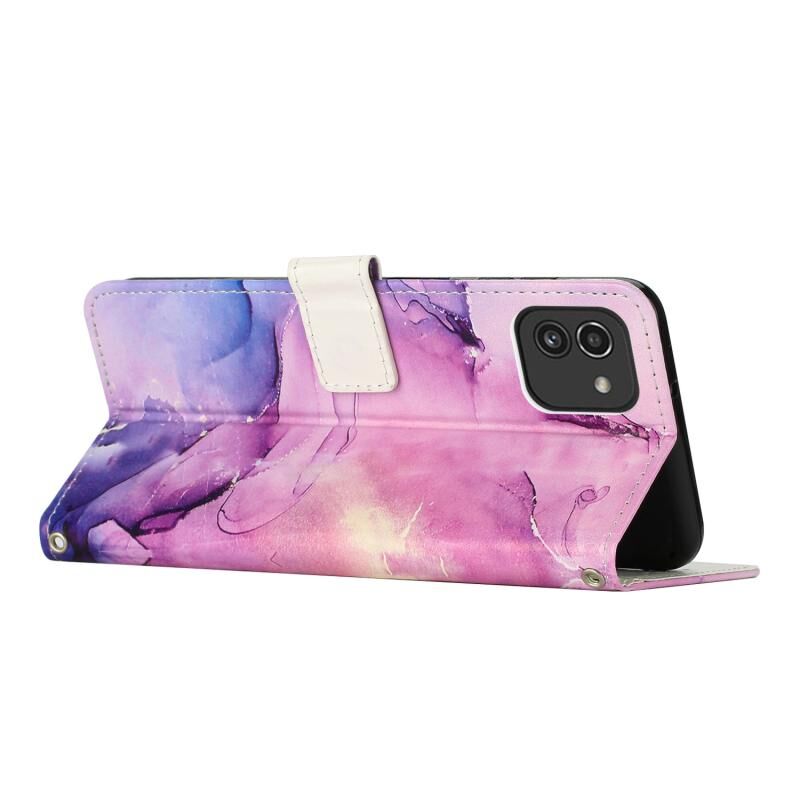 Θήκη τηλεφώνου Samsung Galaxy A03 164mm, δερμάτινη με σχέδιο μαρμάρου και ζωγραφιστό μοτίβο, για χρήση στον ώμο (Μωβ)