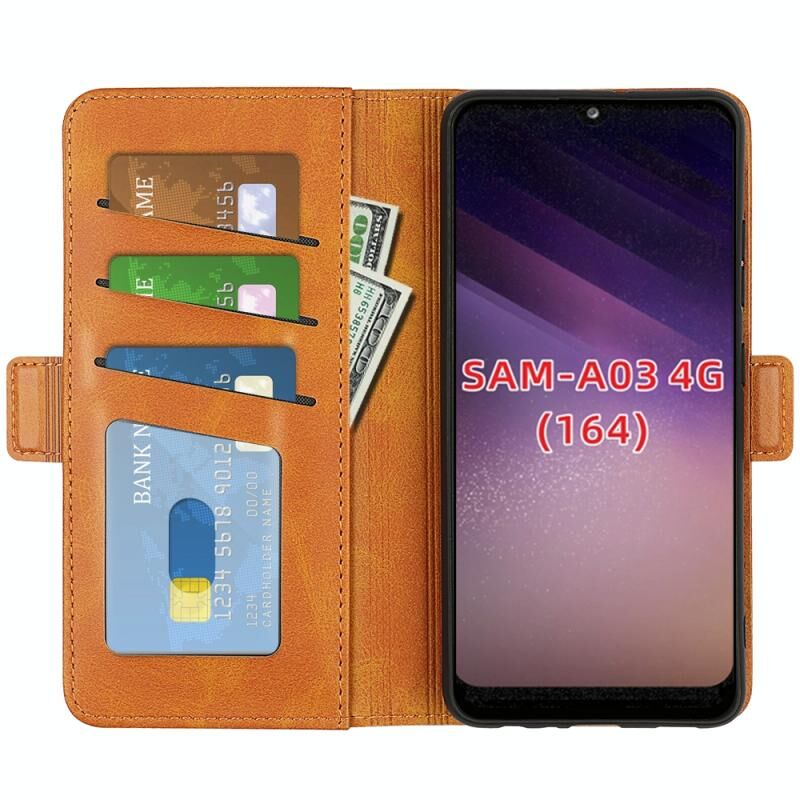 For Samsung Galaxy A03 164mm Dual-side Magnetic Buckle Horizontal Flip Leather Case with Holder & Card Slots & Wallet(Yellow)