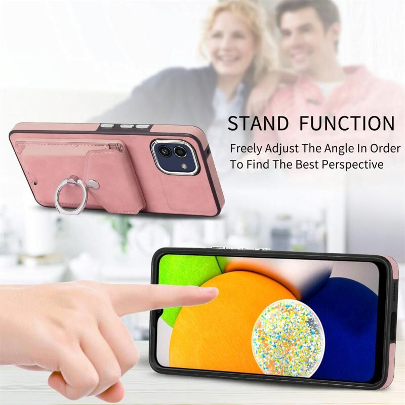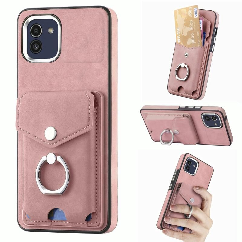 Για το Samsung Galaxy A03 164mm Electroplating δέρμα αίσθηση δέρμα δαχτυλίδι κάρτα πορτοφόλι υπόθεση τηλεφώνου (ροζ)