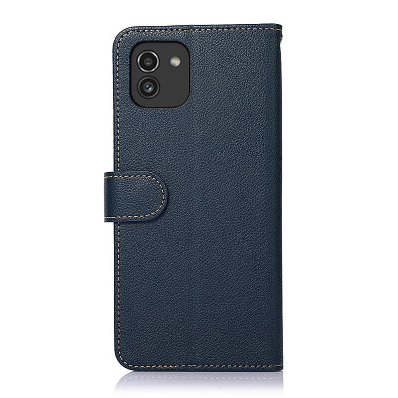 Θήκη κινητού Samsung Galaxy A03 164mm KHAZNEH με υφή δέρματος Litchi και προστασία RFID (Μπλε)
