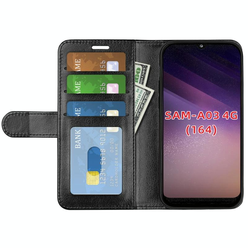 For Samsung Galaxy A03 164mm R64 Texture Horizontal Flip Leather Case with Holder & Card Slots & Wallet & Photo Frame(Black)