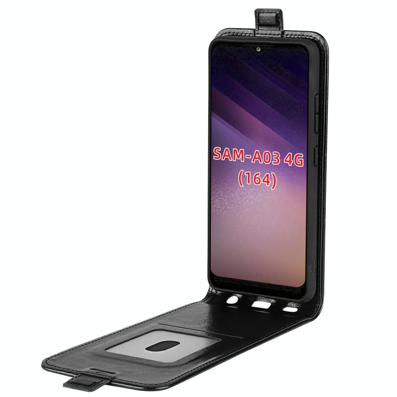 For Samsung Galaxy A03 164mm R64 Texture Vertical Flip Leather Case with Card Slots & Photo Frame(Black)
