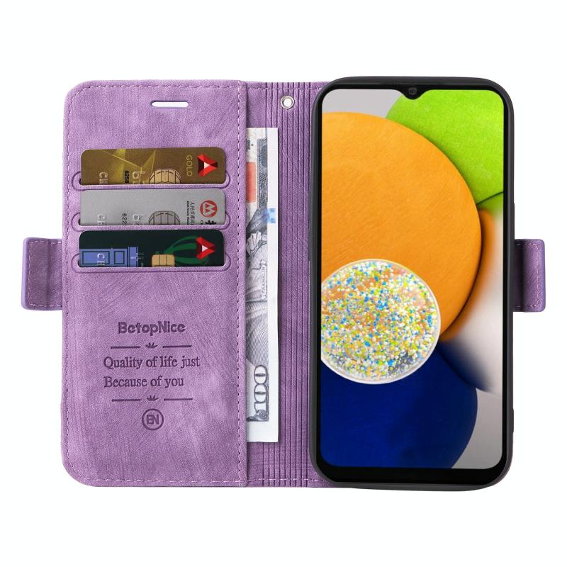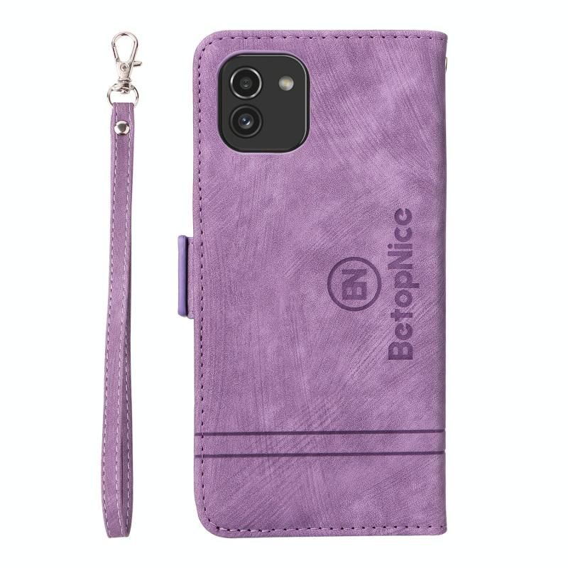 Θήκη τηλεφώνου δερμάτινη διπλής όψης με πόρπη για Samsung Galaxy A03 166mm (Μωβ) (BETOPNICE)