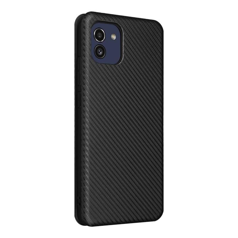Για Samsung Galaxy A03 166mm Carbon Fiber Texture Flip δέρμα τηλέφωνο υπόθεση (Μαύρο)