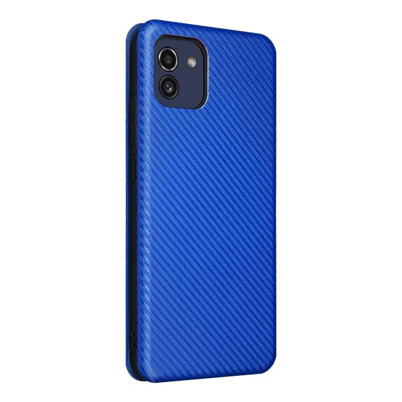 Για Samsung Galaxy A03 166mm Carbon Fiber Texture Flip δέρμα τηλέφωνο υπόθεση (μπλε)