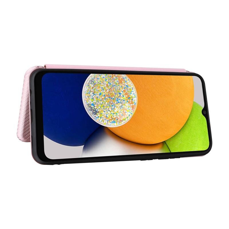 Για Samsung Galaxy A03 166mm Carbon Fiber υφή Flip δέρμα τηλέφωνο υπόθεση (ροζ)