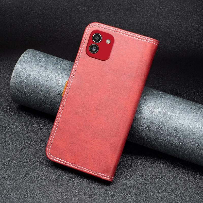 Θήκη τηλεφώνου Samsung Galaxy A03 166mm από δέρμα με διπλή ραφή και αντιστοίχιση χρωμάτων (Κόκκινο)