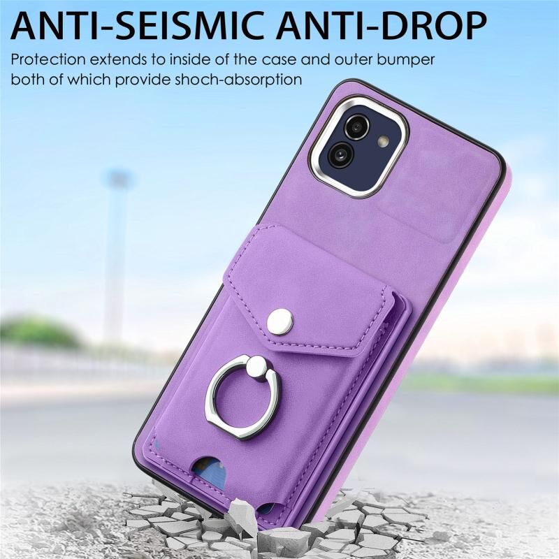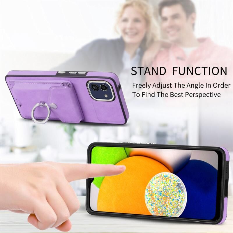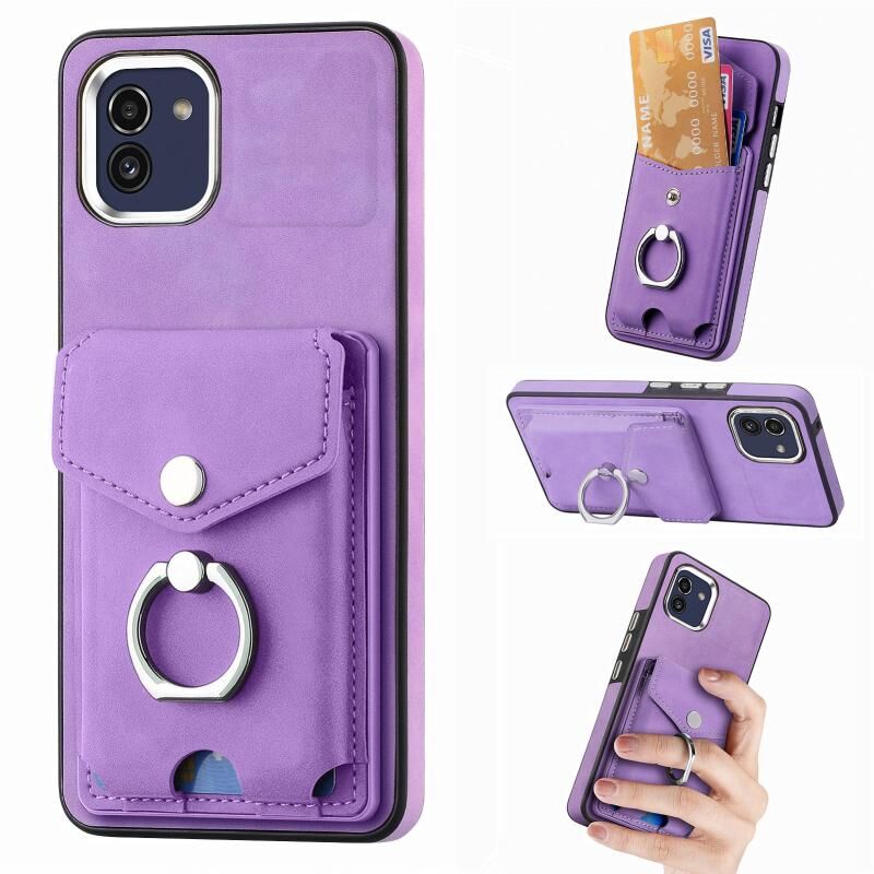 Για το Samsung Galaxy A03 166mm Electroplating δέρμα αίσθηση δέρμα δαχτυλίδι κάρτα πορτοφόλι υπόθεση τηλεφώνου (μωβ)