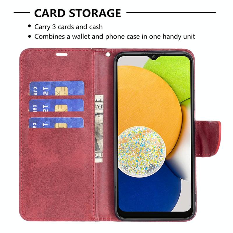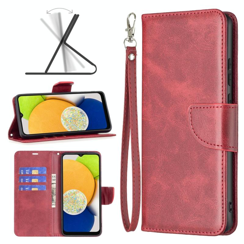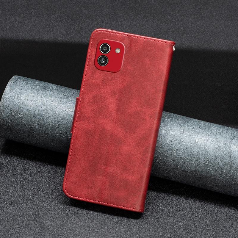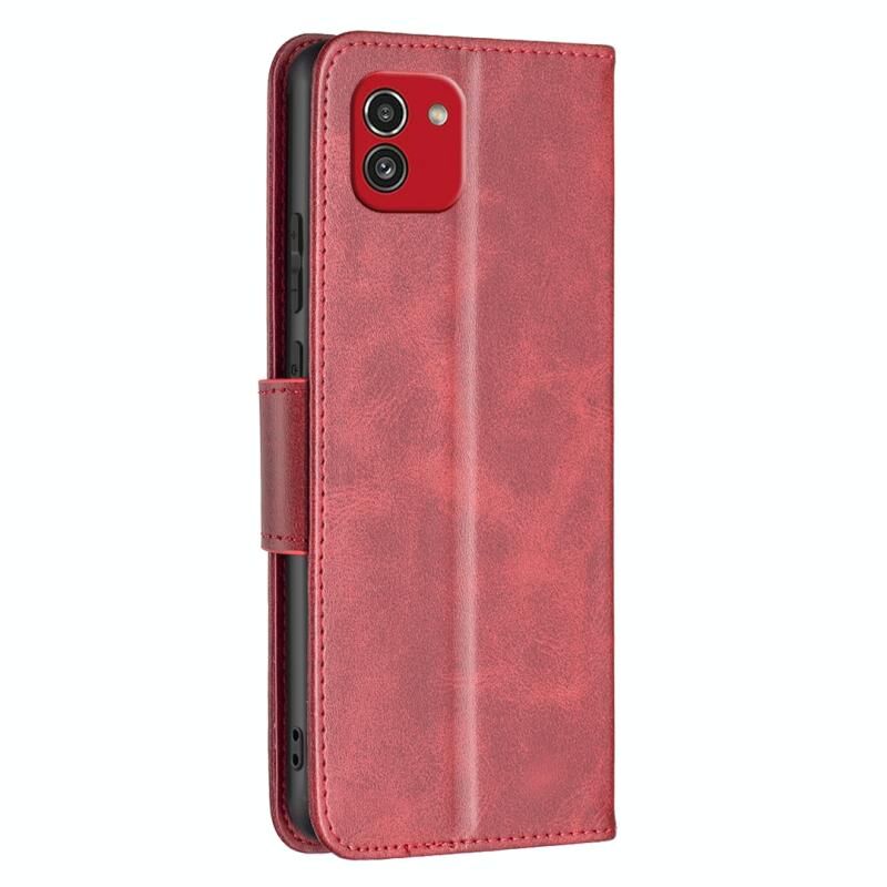Θήκη τηλεφώνου Samsung Galaxy A03 166mm από γνήσιο δέρμα αρνιού με καθαρό χρώμα και σχέδιο flip (Κόκκινο)