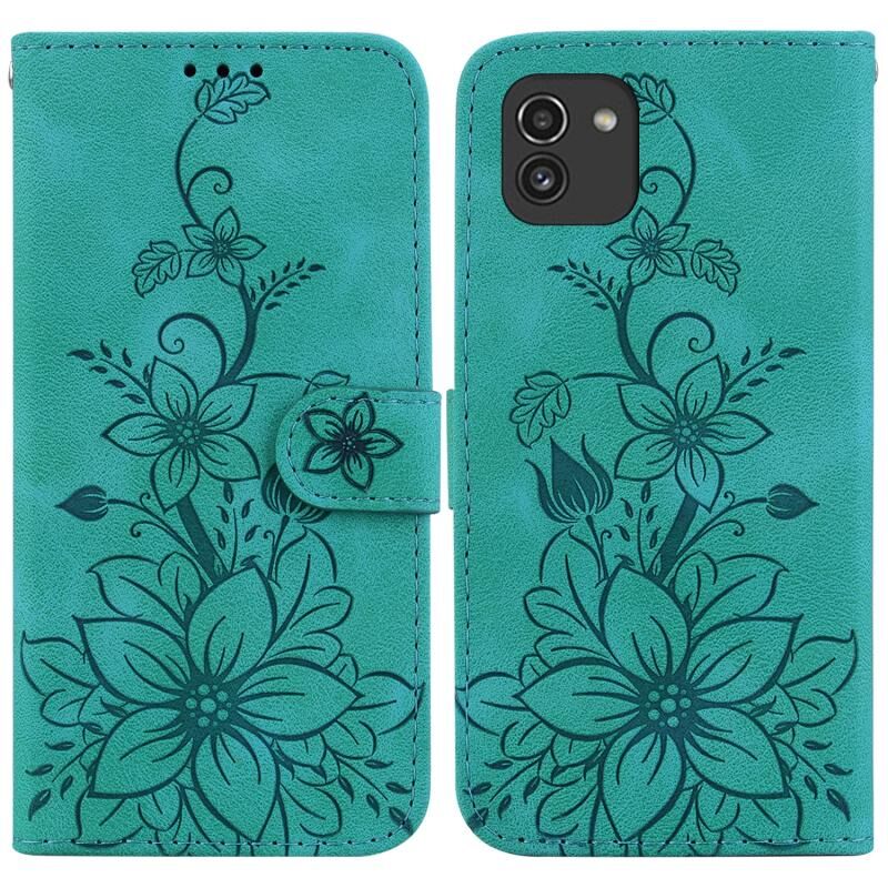 Θήκη τηλεφώνου δερμάτινη ανάγλυφη Lily για Samsung Galaxy A03 166mm (Πράσινη)