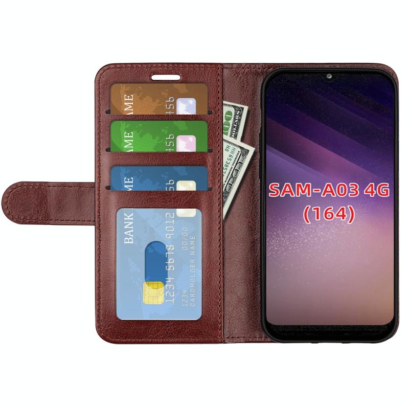For Samsung Galaxy A03 166mm R64 Texture Horizontal Flip Leather Case with Holder & Card Slots & Wallet & Photo Frame(Brown)