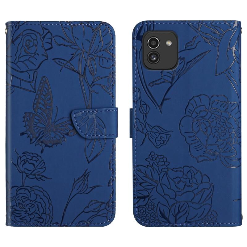 Θήκη τηλεφώνου Samsung Galaxy A03 166mm με ανάγλυφο δέρμα, αίσθηση δέρματος, σχέδιο πεταλούδας και παιώνιας (Κόκκινο)