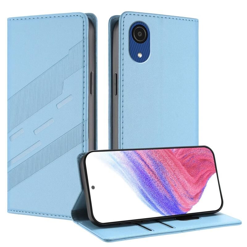 Θήκη τηλεφώνου Samsung Galaxy A03 Core 4G ανάγλυφη, πολυλειτουργική, δερμάτινη, ρετρό (Ανοιχτό μπλε)