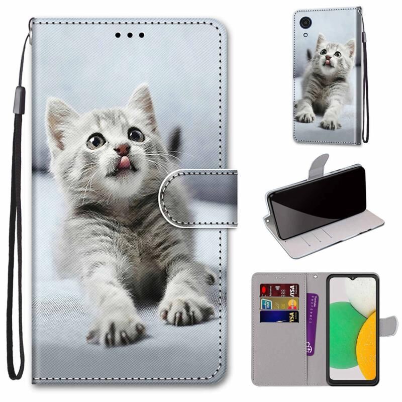 Θήκη τηλεφώνου Samsung Galaxy A03 Core από δέρμα με οριζόντιο άνοιγμα, πολύχρωμο σχέδιο, ανάγλυφη υφή, με βάση, θήκες καρτών, πορτοφόλι και κορδόνι (Ροζ Λουλούδια - Πύργος της Γέφυρας).