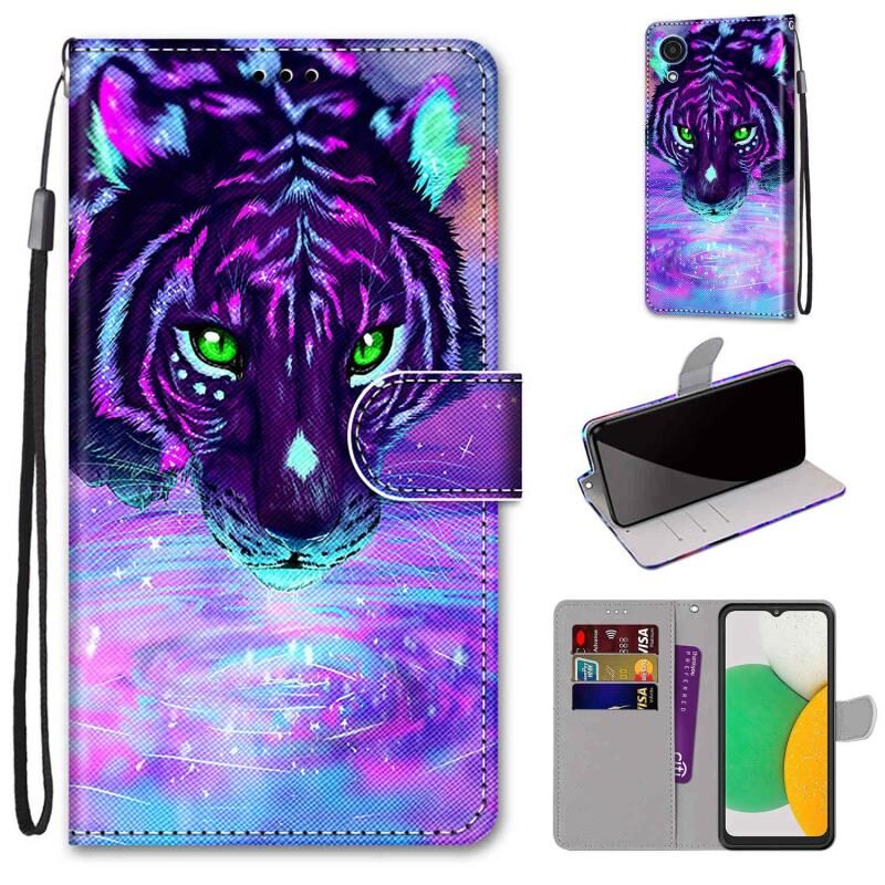 Θήκη τηλεφώνου Samsung Galaxy A03 Core από δέρμα με οριζόντιο άνοιγμα, πολύχρωμο σχέδιο, ανάγλυφη υφή, με βάση, θήκες καρτών, πορτοφόλι και κορδόνι (Τίγρης που πίνει νερό)