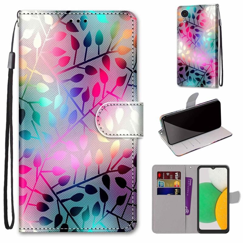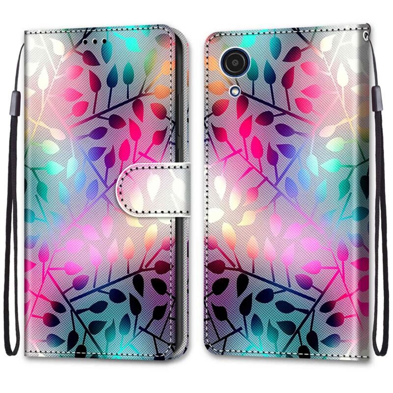 Θήκη τηλεφώνου Samsung Galaxy A03 Core από δέρμα με οριζόντιο άνοιγμα, πολύχρωμο σχέδιο, ανάγλυφη υφή, με βάση, θήκες καρτών, πορτοφόλι και κορδόνι (διαφανές γυαλί)