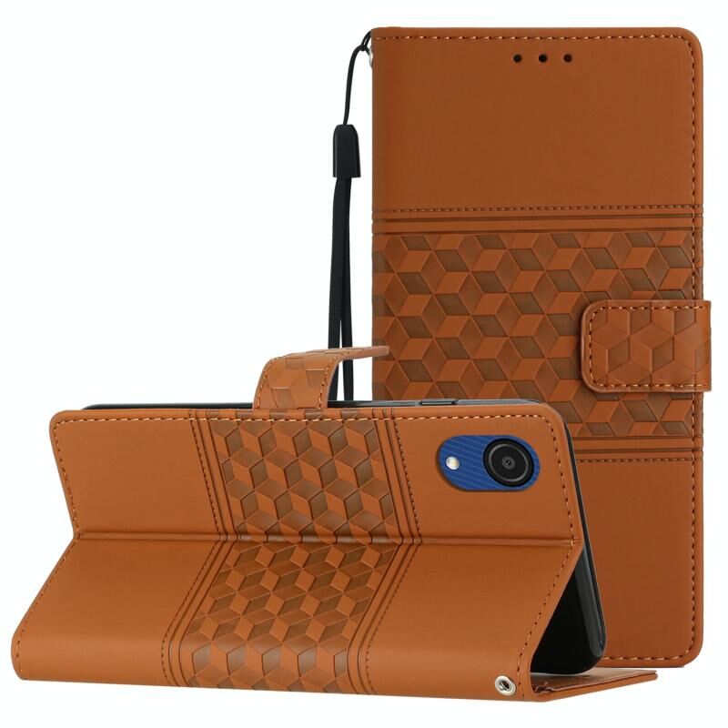 Για Samsung Galaxy A03 Core Diamond ανάγλυφο δέρμα αίσθηση δέρμα υπόθεση τηλεφώνου με κορδόνι (καφέ)