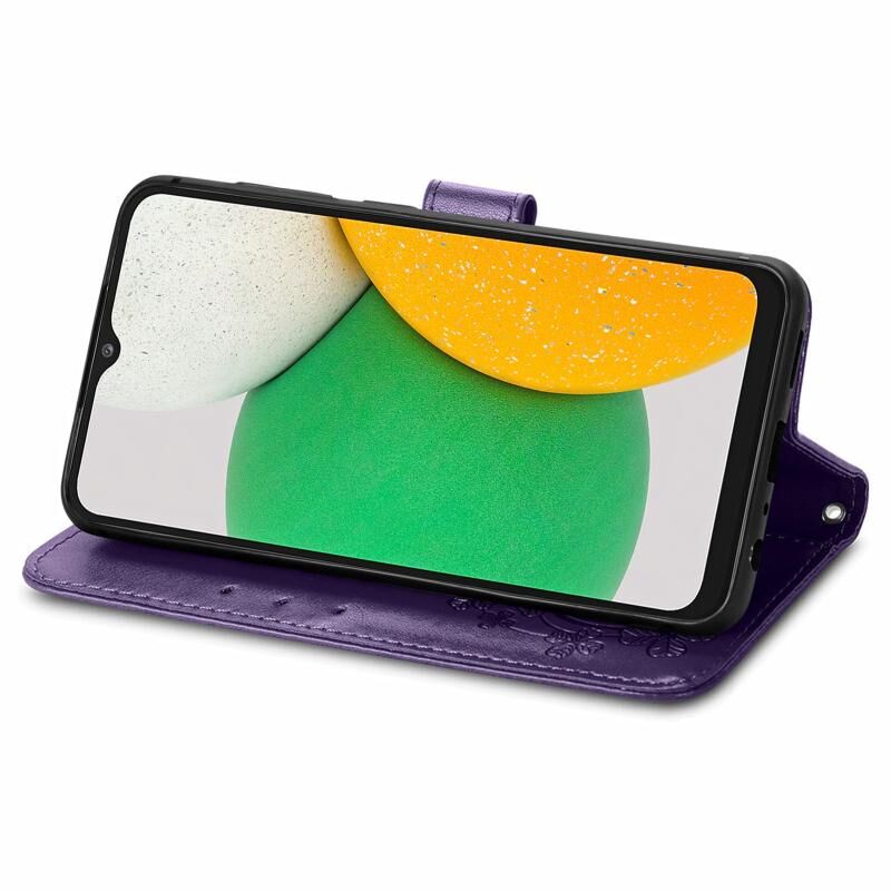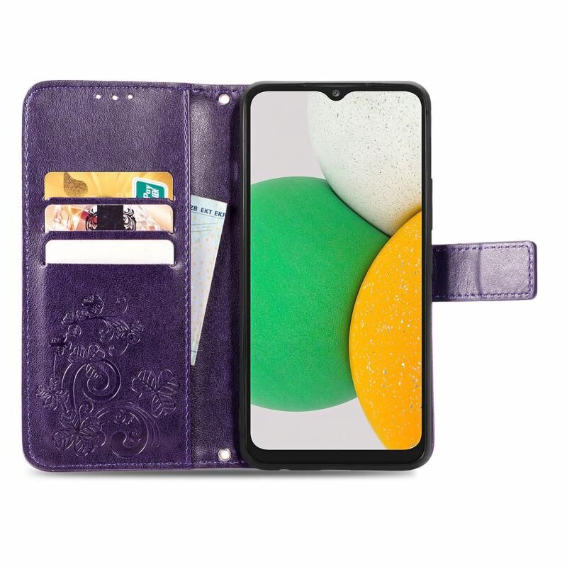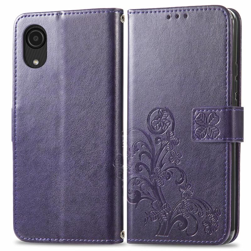 Για Samsung Galaxy A03 πυρήνα τετράφυλλο κούμπωμα ανάγλυφη δερμάτινη θήκη τηλεφώνου (Μωβ)