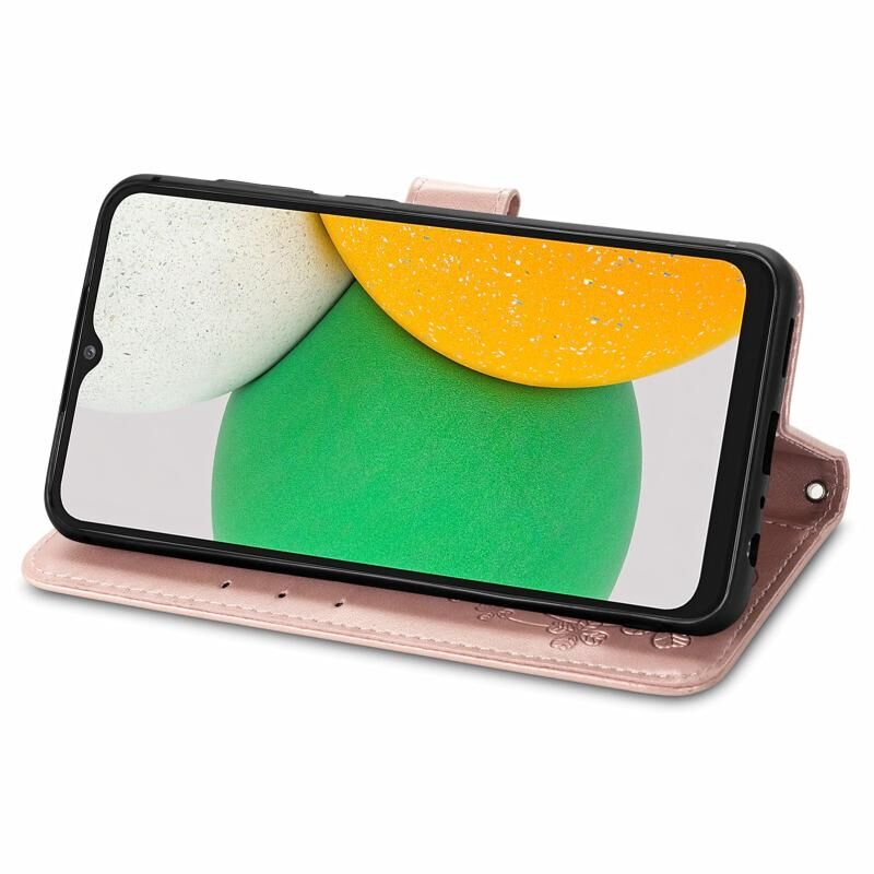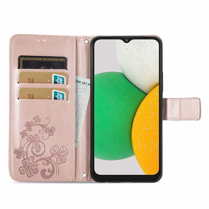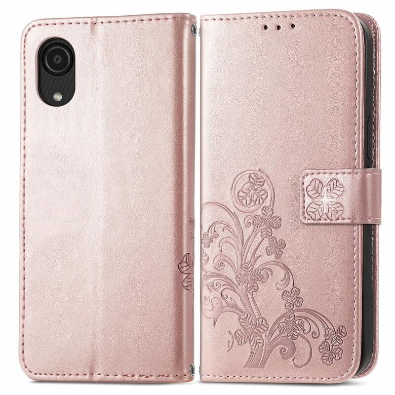 Για Samsung Galaxy A03 πυρήνα τετράφυλλο κούμπωμα ανάγλυφη δερμάτινη θήκη τηλεφώνου (Ροζ χρυσός)