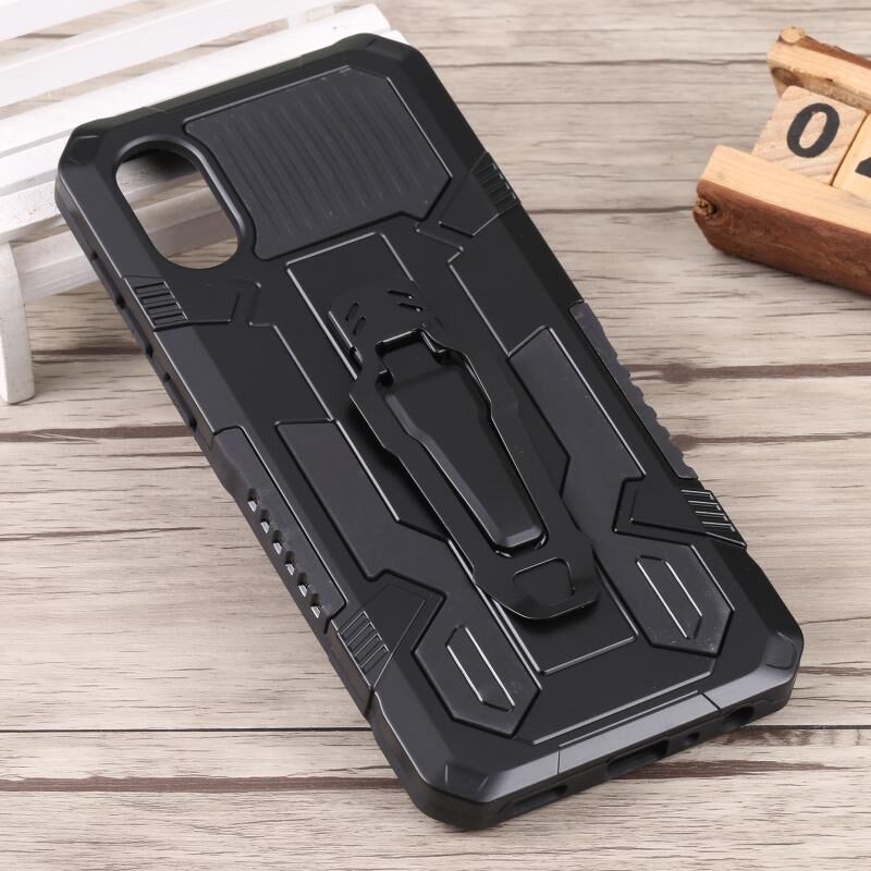 Για Samsung Galaxy A03 Core Lanyard Mecha θωράκιση θωράκιση Kickstand PC + TPU τηλέφωνο υπόθεση (Μαύρο)