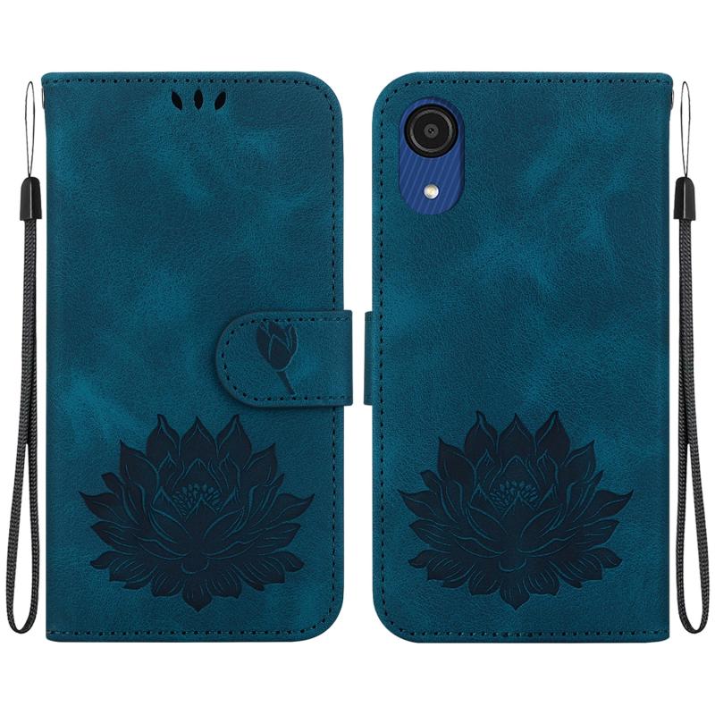 For Samsung Galaxy A03 Core Lotus Embossed Leather Phone Case(Dark Blue)