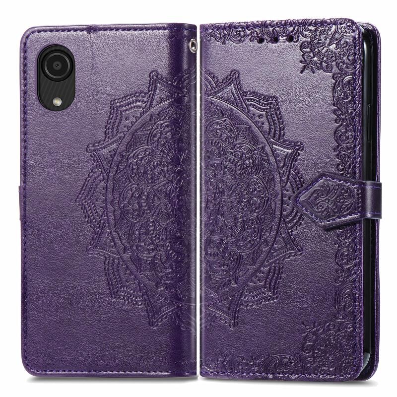 Για Samsung Galaxy A03 Core Mandala λουλούδι ανάγλυφο Flip υπόθεση τηλεφώνου δέρμα (μωβ)