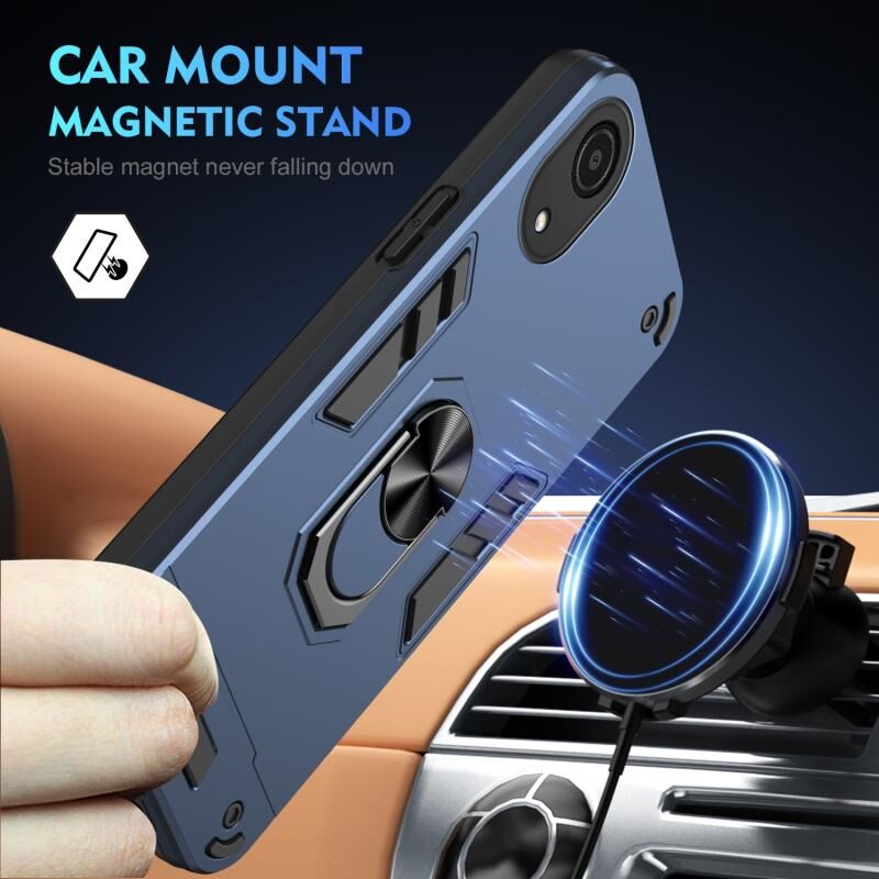 Θήκη κινητού τηλεφώνου για Samsung Galaxy A03 Core, ανθεκτική στις κρούσεις, με μεταλλική βάση δακτυλιδιού (Μαύρο)