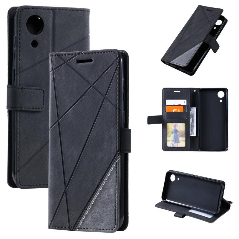 Για Samsung Galaxy A03 Core δέρμα αίσθηση πυρήνα Splicing δέρμα τηλέφωνο υπόθεση (μαύρο)