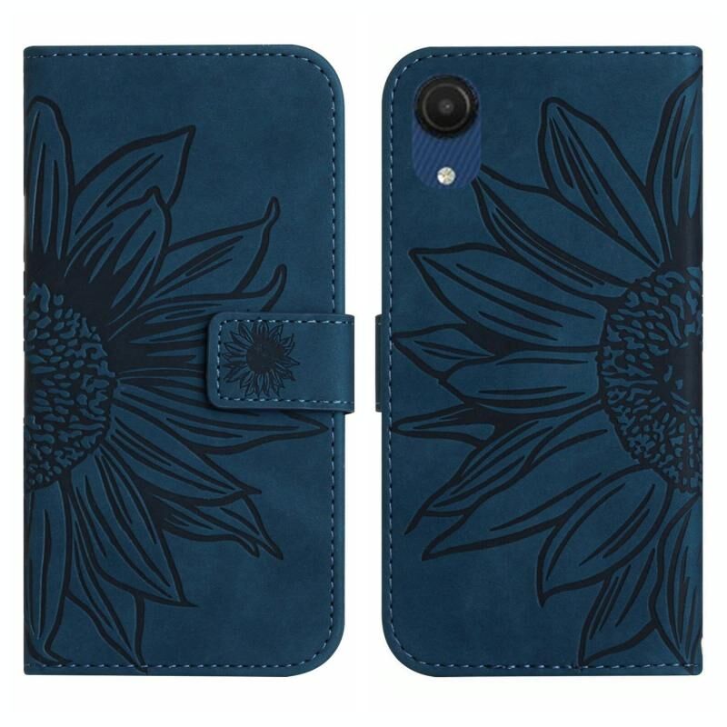 Για το Samsung Galaxy A03 Core Skin Feel Sun Flower μοτίβο Flip δέρμα τηλέφωνο υπόθεση με κορδόνι (μπλε)