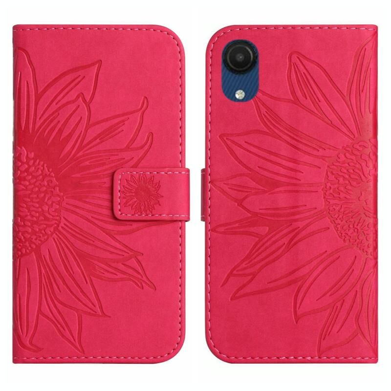 Για το Samsung Galaxy A03 Core Skin Feel Sun Flower μοτίβο Flip δέρμα τηλέφωνο υπόθεση με κορδόνι (Rose Red)